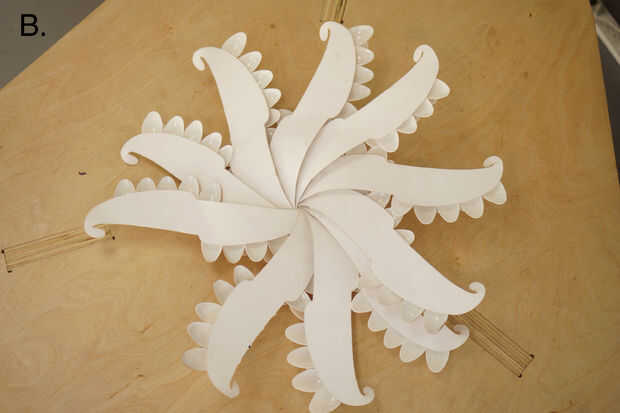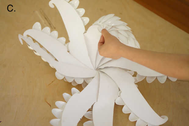 A continuación, darle la vuelta para que el interior (la cara sin puntas de cuchara) es hacia arriba (B).