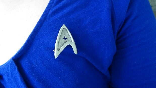 También decidí hacer la versión más reciente de la combadge ya que sólo requiere 2 colores y la pintura, y porque me gusta las nuevas películas.