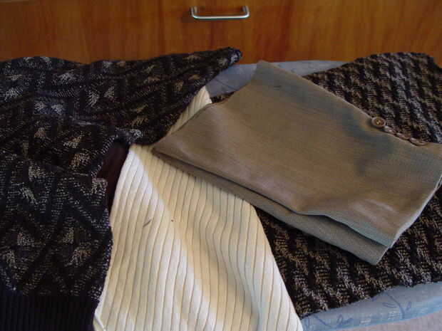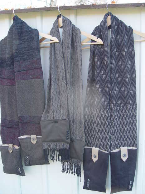 Utilizar suéteres de coordinación o un viejo pañuelo. Cortar los extremos de las mangas de la chaqueta, mina promedio una longitud final de alrededor de 9 pulgadas. Cortar un poco más largo de lo que desea por lo que se les pueden doblar hacia abajo haciendo un borde acabado.