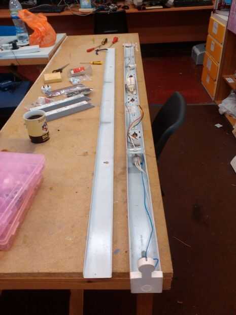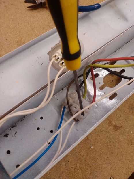 Quite los componentes pasivos originales, el lastre, el condensador y el de arranque y soporte. Puede ser una idea a corto las terminales del condensador si la conexión ha sido encendida recientemente.