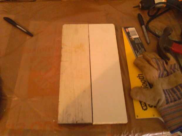 1. cortar la madera con una sierra para hacer un rectángulo. Ajustar el ancho de la caja a la latas de cristal va a utilizar. Utilice papel de lija para suavizar los bordes de corte.
