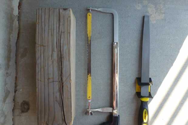 Mi esposa recientemente recogió algunas espigas de ferrocarril antiguo en una venta de garaje y quería convertirlos en una especie de percha. Un rato más tarde, nos recogió un viejo pedazo de Junta de granero de un mercado de pulgas por $5. Finalment