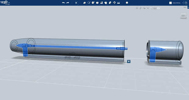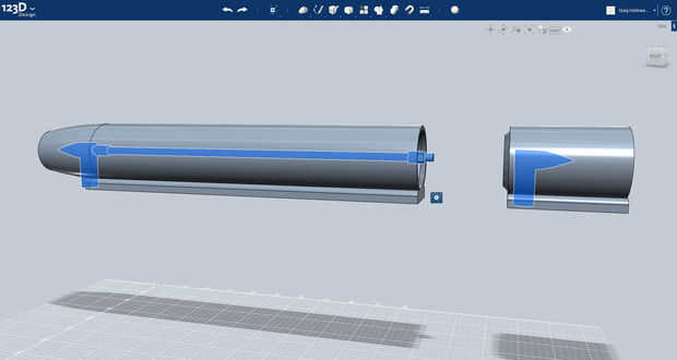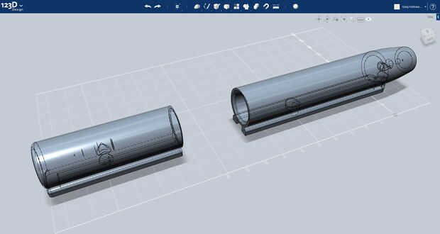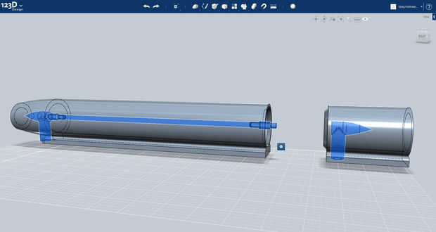 Fue en este punto que me encontré con el problema de tamaño para imprimir. La impresora 3D no puede manejar nada más de 340mm. El cuerpo principal estaba sobre este tamaño y así que tuve que reducir el tamaño del cuerpo principal. Para compensar el ventilador unidad tuvo que ser hecho más largo.