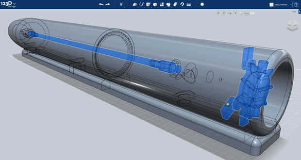 He creado dos agujeros que pasan con el apoyo de la parte inferior de la unidad del ventilador y otros dos en el cuerpo principal... Estos cuatro agujeros se utilizará para sujetar el tubo a la base. Se crean utilizando la cosechadora | Herramientas de restar .