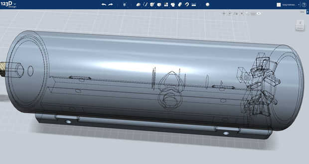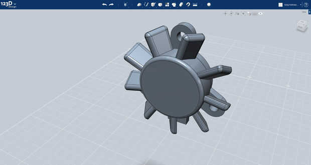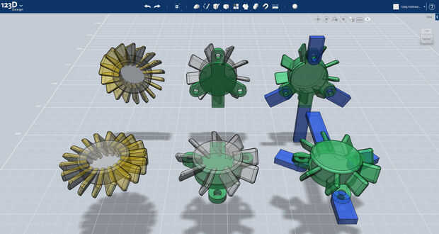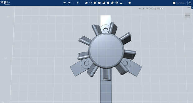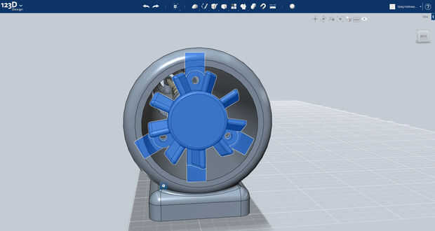 El ventilador se realiza mediante mediciones realizadas directamente desde el ventilador de mundo real sí mismo. Se puede ver en la primera imagen cómo se construye el modelo, a partir de las aletas y eje de centro, hasta los soportes y los montajes asociados. La protuberancia más que sale de la parte inferior del ventilador se utilizará para hacer un canal en la unidad del ventilador a través del cual los cables va a ir.