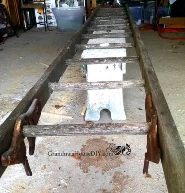 Estoy seguro que no soy el único que ha visto las cosas asombrosas con viejas escaleras en pinterest! Mi favorito de todos los tiempos era un viejo Zapatero de escalera y me acaba de pasar a una escalera vieja yo tengo! Era del abuelo y fue utilizado aquí en la granja por muchas décadas antes de ser colgado para arriba en el lado del viejo garaje donde colgó durante años en años, a la espera de jubilación. No tengo el corazón con todo lo que puedo hacer uso de y, desde el primer día al ver esta escalera, escondido lo justo con este fin en nuestro armario de dormitorio! Yo sabía que haría un estante del zapato del escalera fantástica para todos de mis tacones y no a mención, hermosas mantas y bufandas que yo sigo recogiendo... OK, tal vez "acaparamiento" sería otra manera de decirlo, pero me encantan! Y, estoy seguro, un día que los llevo todos en algún momento... Puedes ver en la parte superior de la escalera todavía mantiene que AMAZING el hardware antiguo. Realmente usted no puede ver en las fotos pero realmente uno de los peldaños de la escalera fue interrumpido un lado y, inicialmente, había planeado hacer mi corte a Retire todos los peldaños sería realmente estables. Sin embargo, después de hacer mis medidas, me di cuenta de que tendría que cortar la parte superior de la escalera para quitar el roto peldaño y, así, perder ese hermoso hardware viejo. Por lo tanto, no era un go!