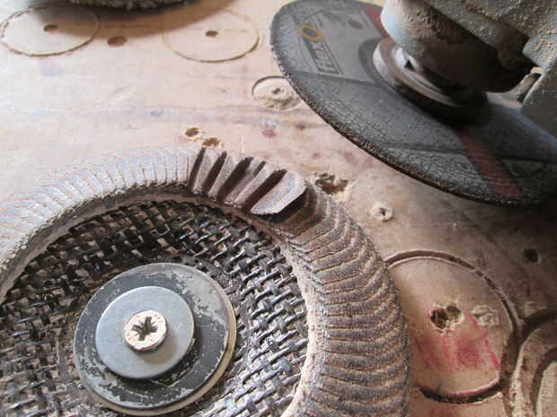 Gire el disco de lija (aquella que es fijo) poco a poco y mantener en corte.