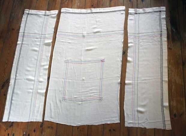 Corté mi mantel hecho en tres partes, debido a los bordados: quería que la plaza en el centro del frente. Desde que estaba en medio de la tela, me cortar dos piezas para la espalda y cosieron a una sola pieza.