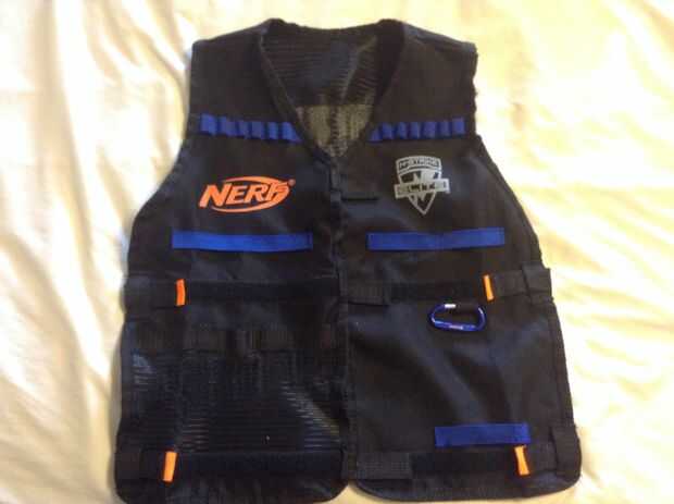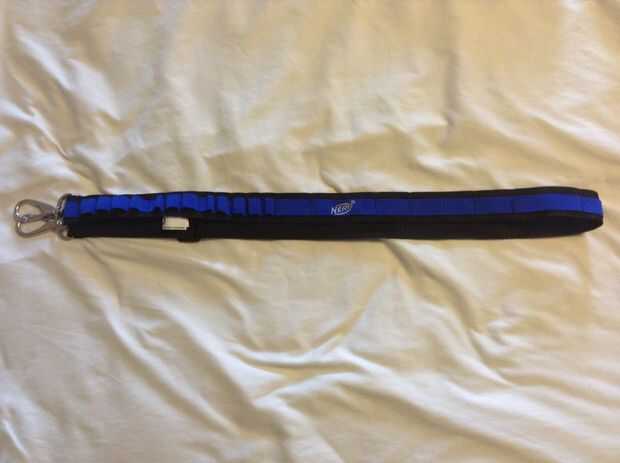 (Foto 3). Se trata de una correa de encargo que hice de un cinturón de vortex de Nerf y una riñonera, (no se burlan de mi riñonera) los titulares de mag de vórtice de la correa encajan perfectamente mi espada y la funda del disco es un contenedor con 18 dardos en informática. La riñonera puede llevar a cabo una sacudida y también contiene otra caja con 12 dardos extras en ella. Este cinturón es recomendado para una carga pesada hacia fuera.