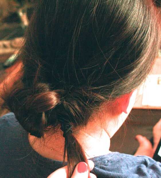 Igual tiró la cola de caballo a través de la brecha en su pelo, tirar la trenza a través de la brecha y enróllelo alrededor tantas veces como sea necesario hasta que se encuentra. A continuación, fijarla con horquillas y si lo desea, recorte con cuidado la diadema. Entonces, estás acabado! También, por favor asegúrese de votar en el concurso de pelo y maquillaje! ¡Gracias!