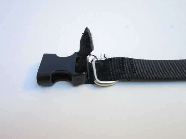 El collar que lo compré sólo fue cosido en dos lugares, así que empecé por recorte los hilos de rosca en un extremo, a continuación, quitar todos los ganchos y reguladores y acabado por el recorte de los hilos de rosca restantes en el extremo opuesto.