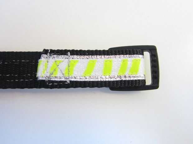 Tire el extremo abierto del collar a través de la parte restante de la hebilla y doble el extremo sobre unos 2".