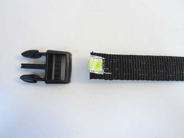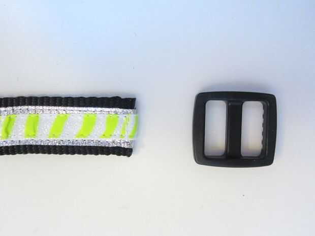 Inserte el 1 extremo del collar a través de la barra deslizante (conocido como triglide - es la pieza con 2 agujeros)