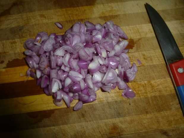 Limpiar un puñado de pequeñas cebollas y cortarlas en trozos pequeños. Usted puede Agregar tanta cebolla que te gusta, le da más sabor a la Idli Uppuma.