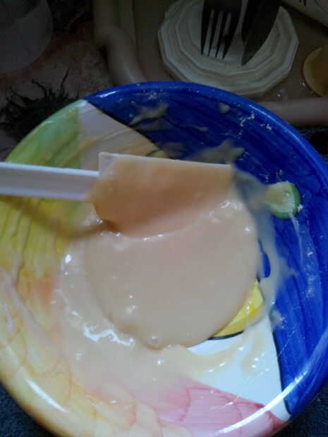 4. Añadir el leche/agua, poco a poco y continúe batiendo hasta obtener una consistencia ligera, con sin grumos.