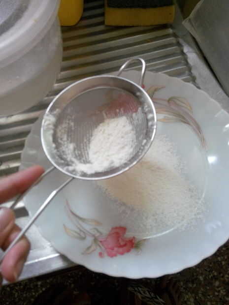 3. gradualmente tamizar la harina y polvo de hornear poco a poco. de la mezcla