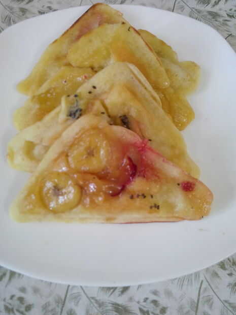 7. Cierre la tapa y dejar durante unos 3 minutos (o menos) o hasta que doren en lado de la fruta. voltear y repetir.