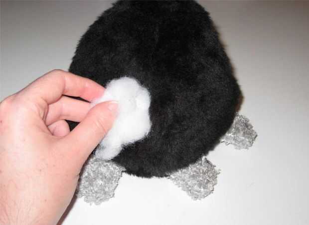 Ahora es el momento para la diversión parte! Cosas el juguete hasta que se siente derecho. Si está utilizando relleno de fibra poliester, sacar trocitos y empuje en la parte superior e inferior del juguete primero. Si quieres el juguete a ser firme, seguir empujando trozos de relleno en hasta que se siente bien y luego poner algunos más pulg (tienden a aplastar abajo con el tiempo, especialmente si el juguete se abrazó.)