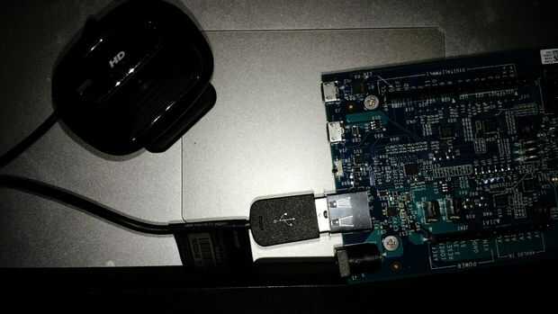 Conecte el cable USB/micro-USB a medio puerto Micro-USB en el tablero. Conecte el extremo USB poder ed puerto como un ordenador portátil.