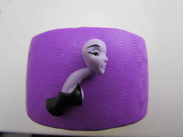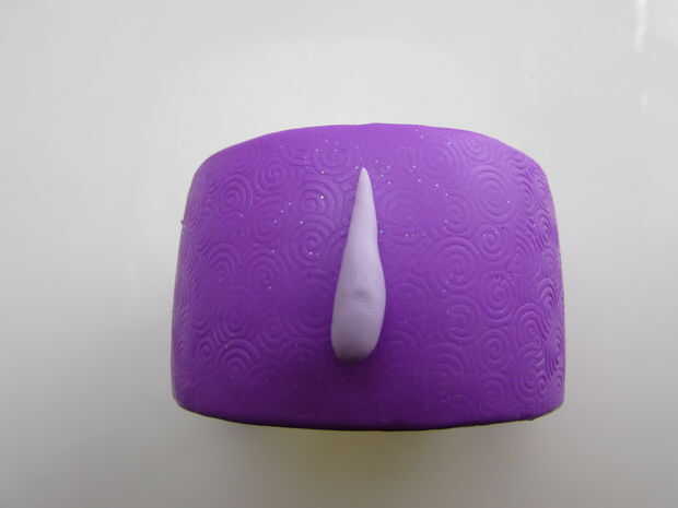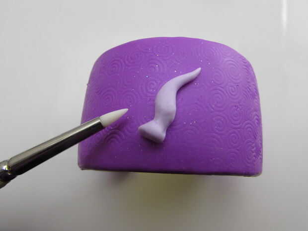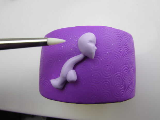 Su arcilla púrpura luz y una barra cónica alargada. Con la ayuda de un modelador de silicona, crear las curvas del cuello, espalda y cintura. (Foto 2)