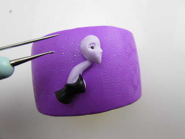 Para los ojos, poner una pequeña bola redonda negro y dibujar en los párpados superiores con una herramienta de la aguja.