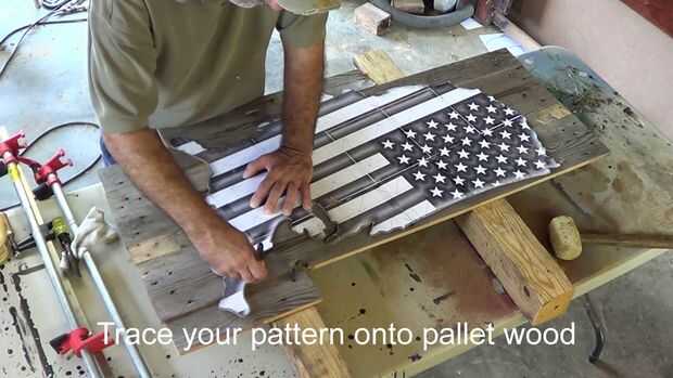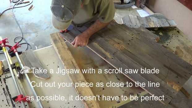 Ahora trace su patrón en su stock de palets y cortar con una sierra de calar. Estoy usando una hoja de sierra para el corte.