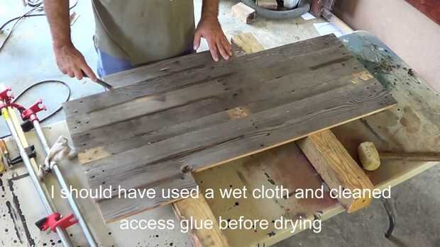 Nota las tablas del pegamento, con la cara vista para arriba y limpie cualquier exceso antes que se seque, le ahorrará mucho tiempo. Me puse a toda prisa y olvidó.