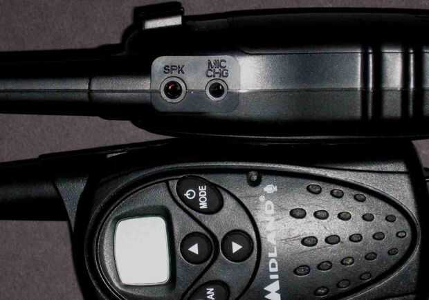Esta configuración está diseñada para radios de dos vías que tienen conectores para altavoz externo y micrófonos, como se muestra en la imagen. Las conexiones accesorias en muchas radios portátiles tienen un jack mono de 1/8" para la salida de altavoz y un conector mono 3/32" para la entrada de micrófono.