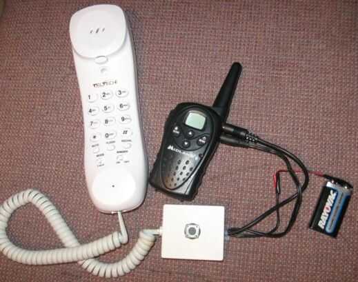 * Conecte una batería de 9V a la conexión de masa. Recuerde retirar la batería cuando no está en uso, ya que constantemente suministrará energía al teléfono mientras está conectado.