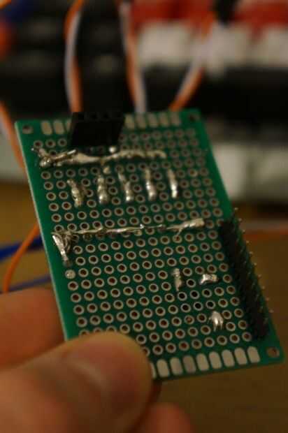 Mi diseño requiere el protoboard para montarse encima de arduino como escudo, para que cabeceras fueron también soldadas en la placa para proporcionar un soporte robusto. Esto debe hacerse para satisfacer su propia especificación.