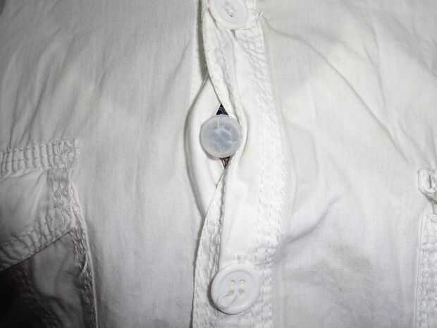 Fije el PIR sensor en su camisa donde quisiera de un botón (arreglarlo de esa manera)