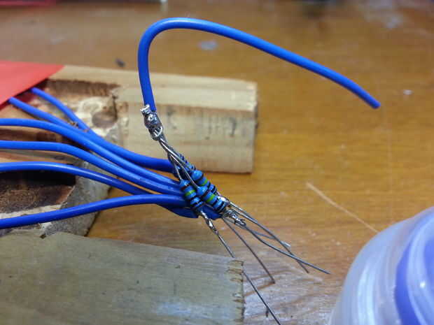 Únete a todos los extremos de las resistencias y de soldadura a otro