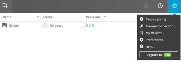 Configuración es muy sencilla a través del cuadro de diálogo de clic en el (rueda dentada). De aquí que son capaces de ver y conectar dispositivos o crear una conexión manual al otro dispositivo, pero se necesita un medio para conectar desde el otro dispositivo si el manual. Preferencias, que son capaces de ver las opciones para configurar la sincronización para adaptarse a ti.
