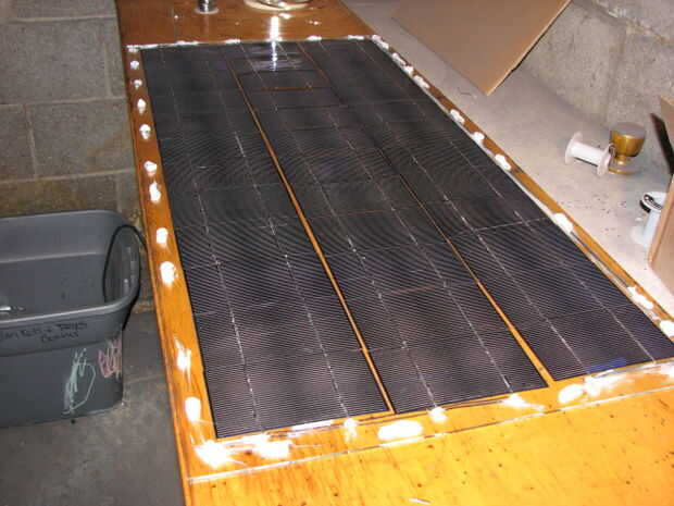En mi opinión, este tipo de panel Solar sella mejor. Fue hecho con dos hojas de 1/8" grueso cristal. Una hoja de vidrio fue el apoyo y las células solares fueron siliconadas a él. La otra lámina de vidrio se coloca en la parte superior para formar un sello. Antes siliconada arriba, le puse gotas de silicona alrededor de la 1" de labios para el sello, de 1/4" de alto y dejar secar durante la noche. Al día siguiente entonces puse silicona alrededor del labio 1" en la pieza de vidrio de fondo. Las gotas se utilizan para detener el vidrio de hundir todo el camino y frenar las células solares. Después de secado, añadí más alrededor para asegurarse de que tenía un buen sello. Luego lo usé para el marco blanco, en las muy últimas fotos que se muestra aquí abajo, es blanco moldura j o j-Chanel, lo que se suele utilizar cuando una casa como lo que el revestimiento se utiliza alrededor de puertas o ventanas. Esto era siliconado en demasiado, entonces cuando seca he añadido más, que esto hizo un sello doble. Este panel Solar está sellado real bueno para mantener fuera la lluvia y la humedad. El marco de madera también es buena, pero a veces duro para hacer un agua de sello apretado, o para evitar condensación debido a la madera.