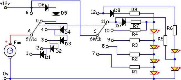 Mediante una cadena de diodos montados en un interruptor giratorio, puede producir una serie de pasos de voltaje dando un control adecuado para los fanáticos.