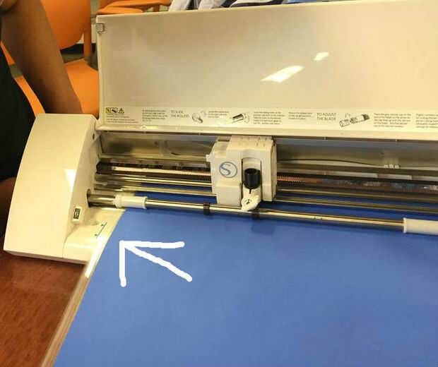 - Puse el papel de construcción en la estera pegajosa del corte.