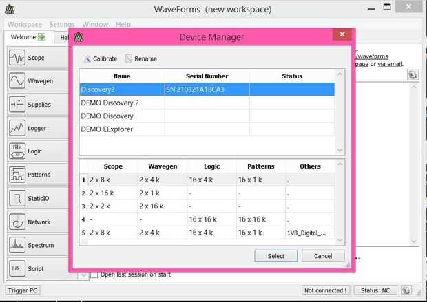 El 2 de descubrimiento análogo es un instrumento de bolsillo de todo-en-uno para la electrónica que contiene un osciloscopio de 2 canales, fuentes de alimentación, generadores de forma de onda, analizadores lógicos y más. Recientemente, descubrí que