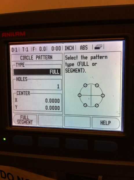 Primero es elegir si quieres un patrón completo o segmentado (parte de un círculo). Para este ejemplo que haciendo un patrón completo. A continuación seleccione cuántos agujeros que desee y luego entrar en la x y cero posiciones (0,0 en este caso). Una vez que haya introducido toda esta prensa el botón de abajo. Se abrirá la pantalla de 2.
