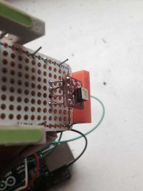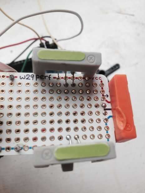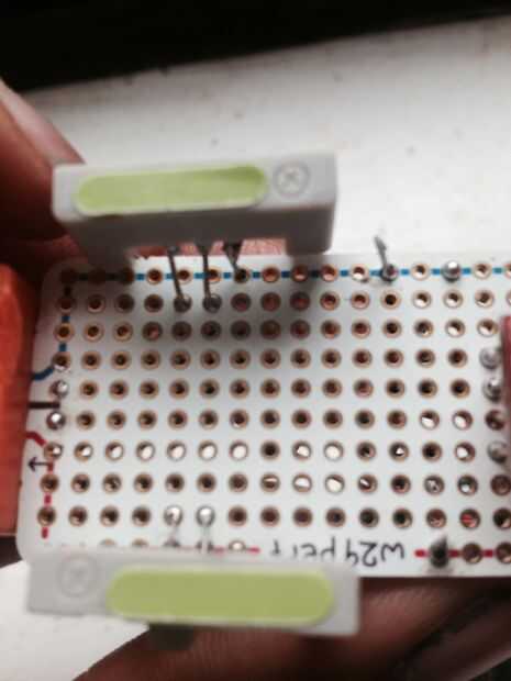 El tilt-a-whirl unos 4 filas delante de la entrada bitsnap en el perfboard de la soldadura. También ver imagen para mayor claridad.