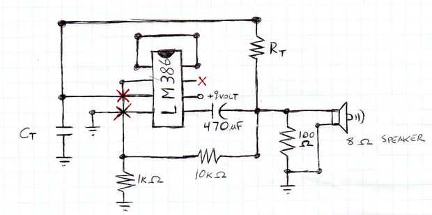 Si R3 (100 Ohm) es excluido o eliminado, usted conseguirá un chillido ruidoso así que trate de evitar que.