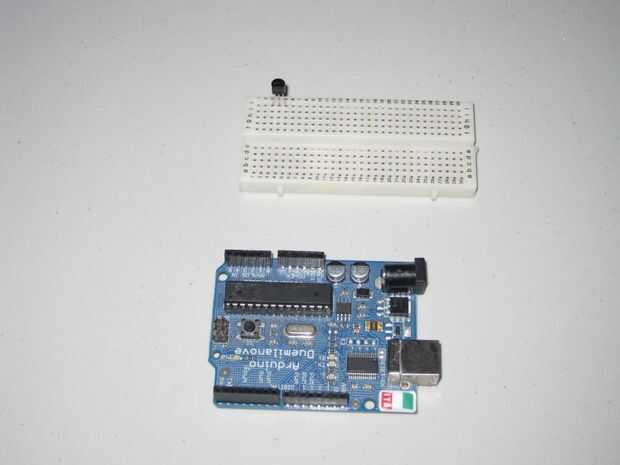 El pinout que se muestra es la vista inferior. Es el perno de ajuste para la calibración, y puede con seguridad ser izquierda desconectada. Podemos hacer cualquier calibración utilizando el sketch de arduino. Poner el sensor en el protoboard como se muestra. Lado plano hacia usted.