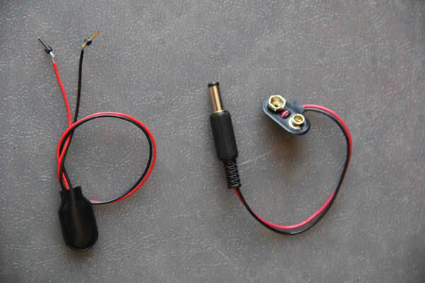 Arduino se funcionan con una batería de 9V, por lo que no necesita ser atado al cable USB. Dependiendo del conector/soporte que tienes deberá soldar un conector de barril de 2,1 mm en las puntas (Asegúrese de que la patilla central se suelda al cable positivo). También puede comprar un soporte con un conector ya.