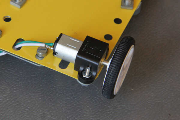 Por último, soldar los cables a los bornes de los motores. I utilizan cables puente, había despojado de uno de los extremos y soldar en el motor. Esa manera, tienes las clavijas para conectar el motor a la placa.