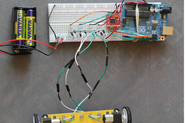 Por último, conecte el motor a la placa - en la imagen, el cable blanco.