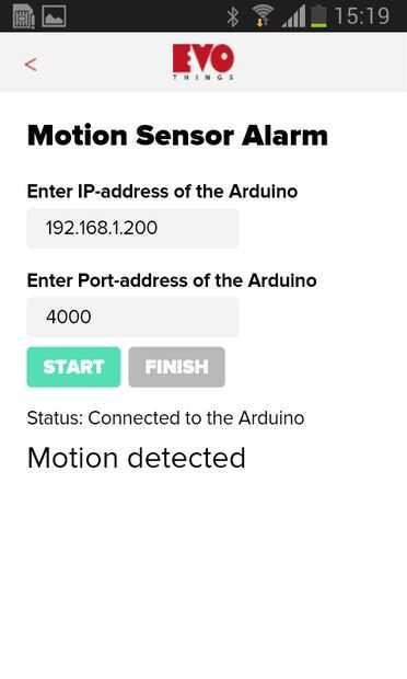 Fue tan fácil! En el siguiente paso, voy a explicar la parte del código de la aplicación de ejemplo que es detectar el movimiento y enviar un comando de activación para el Arduino.