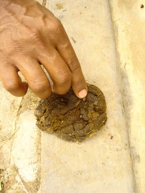 Esto puede hacerse con estiércol fresco y seco, pero es más eficaz cuando el estiércol fresco. Para ello, solo repetir los dos primeros pasos, pero esta vez incorporar las semillas en el estiércol antes de pegarse a la pared.