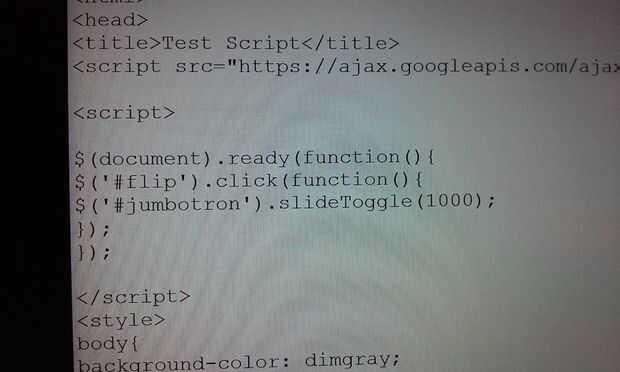 2.) tenemos nuestra imagen con el id de 'pantalla gigante' y añadir la función slideToggle() con un parámetro de 1000-1000 milisegundos (1 segundo retrasa)