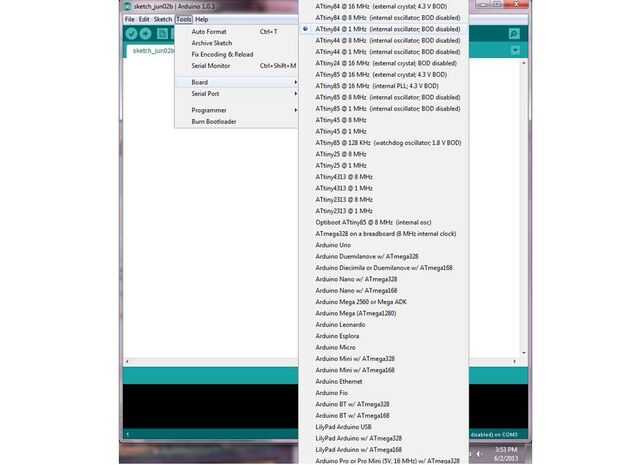 15) Seleccione ATtiny84 a 1 MHz (oscilador interno; BOD deshabilitado) seleccionando