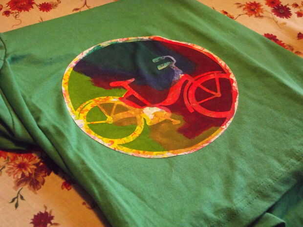La pintura acrílica y permanecer dentro de las líneas, pintar la camisa. Puede usar todos de un color, o remolino juntos. Mi hijo le encanta el mago de Oz ahora y es loco sobre arco iris, así que he utilizado todos los colores. Para los colores más oscuros una capa era suficiente, pero para los colores más claros que tenía que hacer 2 capas.