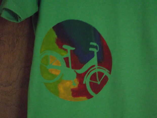 Después de que la pintura seca un poco, pero no completamente, retire la plantilla. La pintura secará más rápido en la camisa que en la plantilla, así que ten cuidado cuando está quitando no permitan que el sello toque la camisa cualquiera eran otra cosa. Si espera demasiado tiempo y la pintura se haya secado completamente la plantilla se pega a la camisa un poco demasiado y es más difícil de quitar.